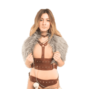 Leather harness sexy costume with peignoir inspired by Kitsune.