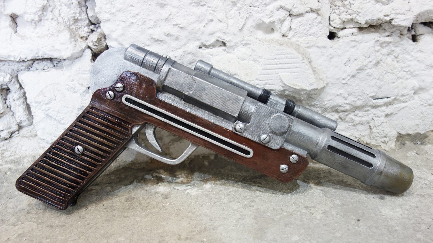 DT-29 Director Orson Krennic blaster and holster prop inspired by Star Wars. Used by Orson Krennic in Star Wars the Rogue One movie and Battlefront game.