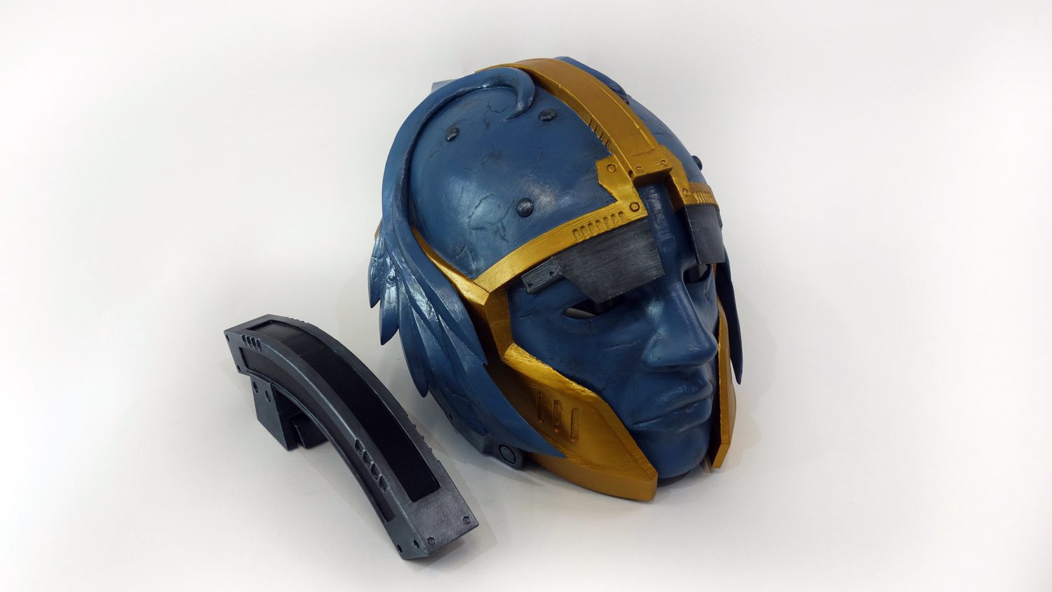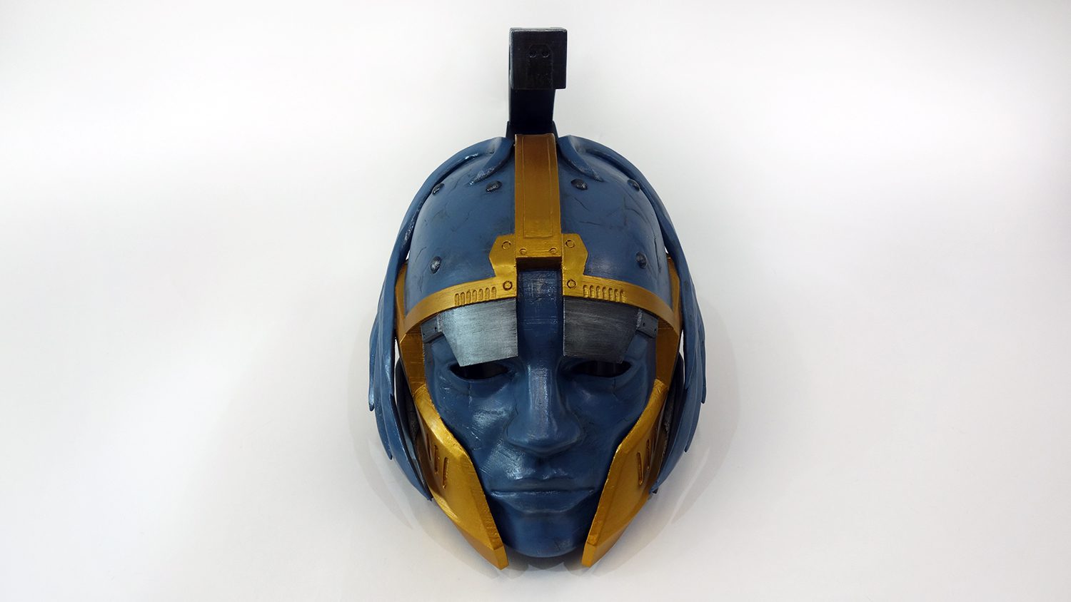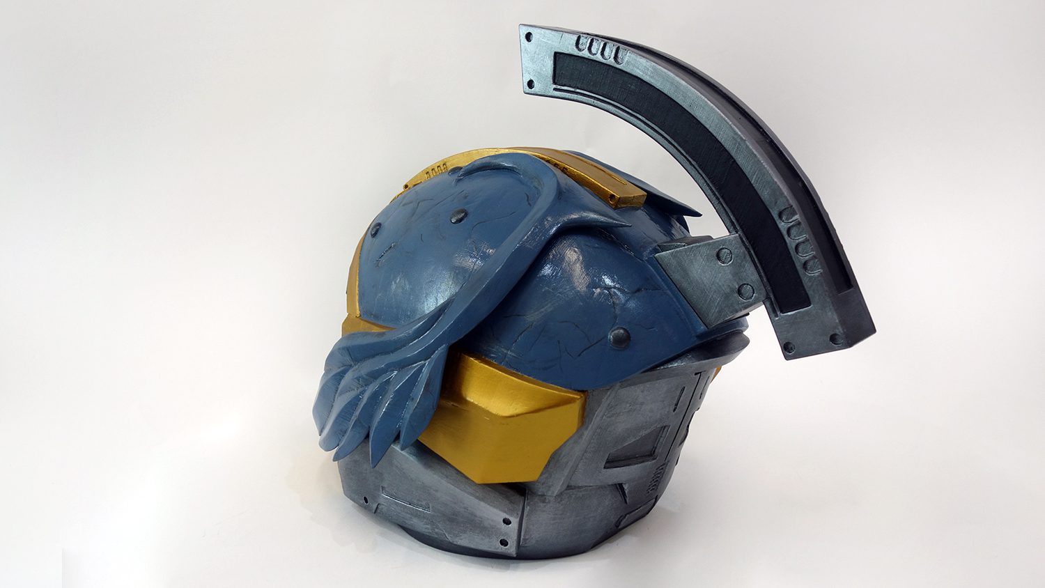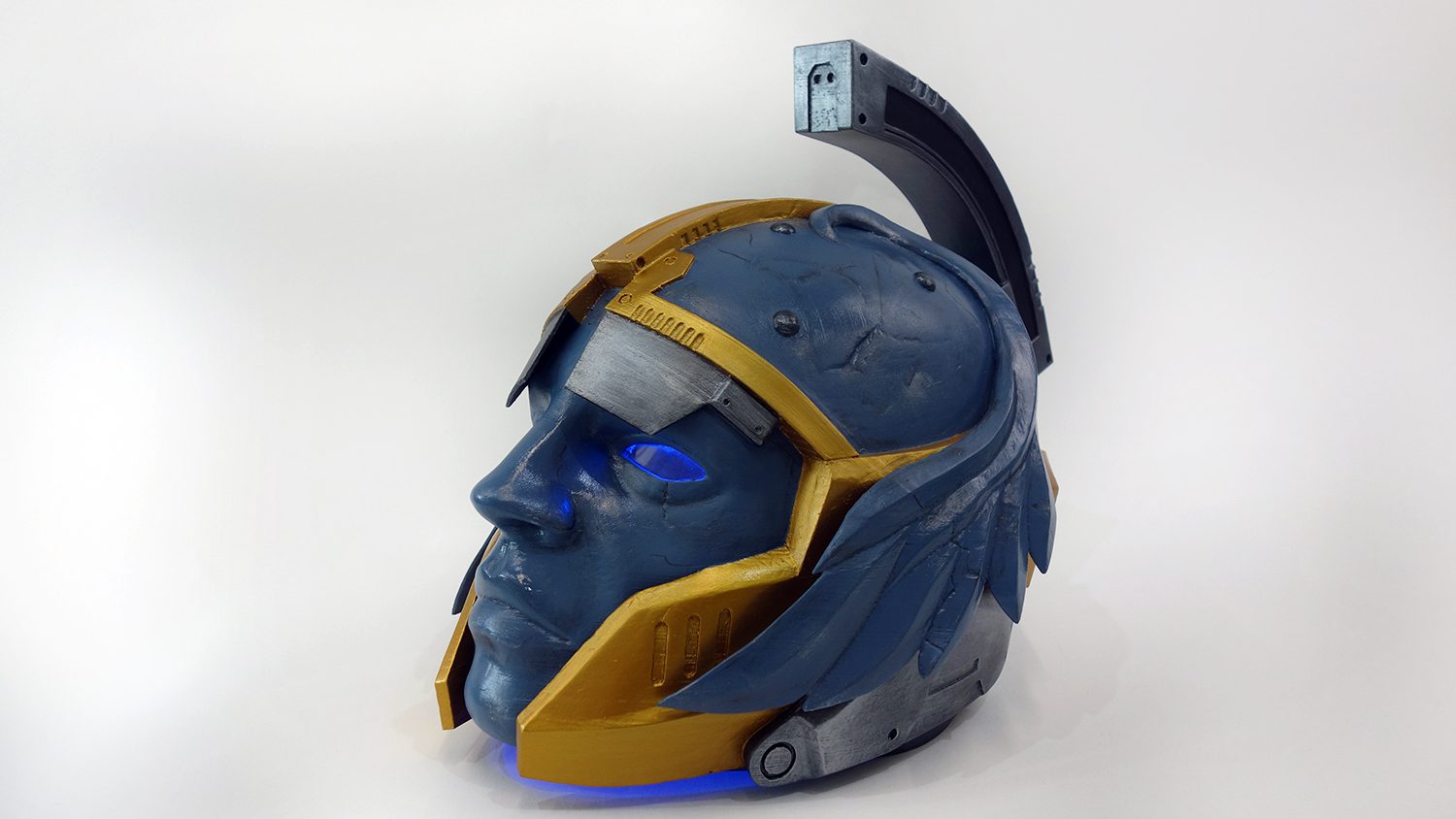 Eternal Warrior exotic helmet prop from Destiny is made of plastic, assembled and sanded, hand painted with acrylic paint and varnished with a satin/glossy finish, so the paint could remain as long as possible. Eternal Warrior is an Destiny exotic titan helmet.
