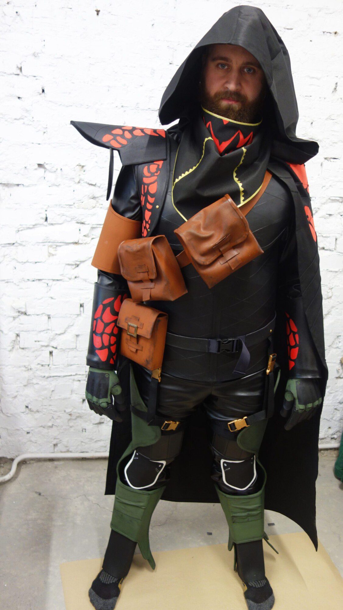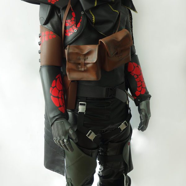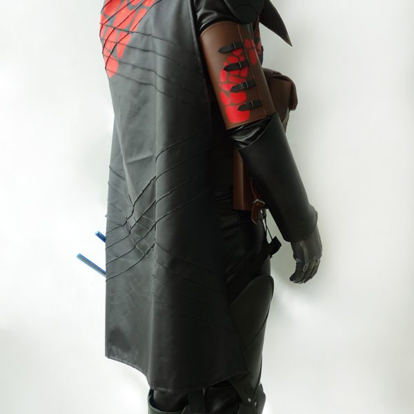 Costume armor is made of EVA foam, plastic parts and fabric.