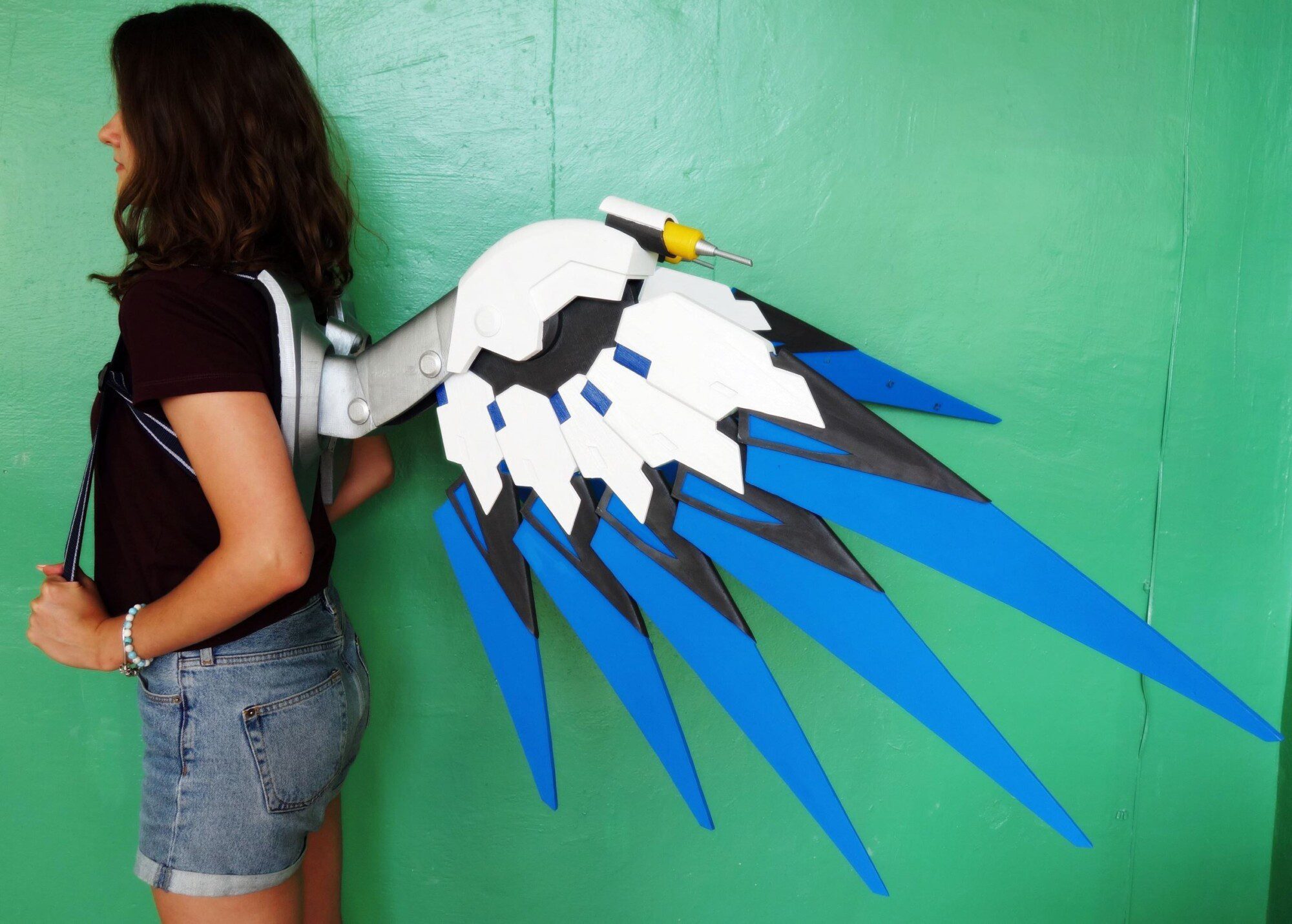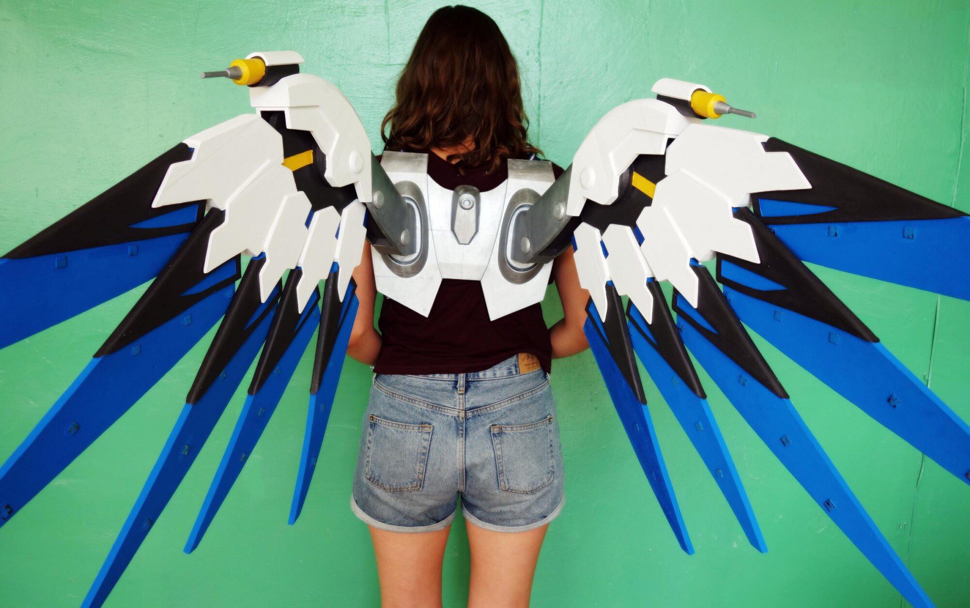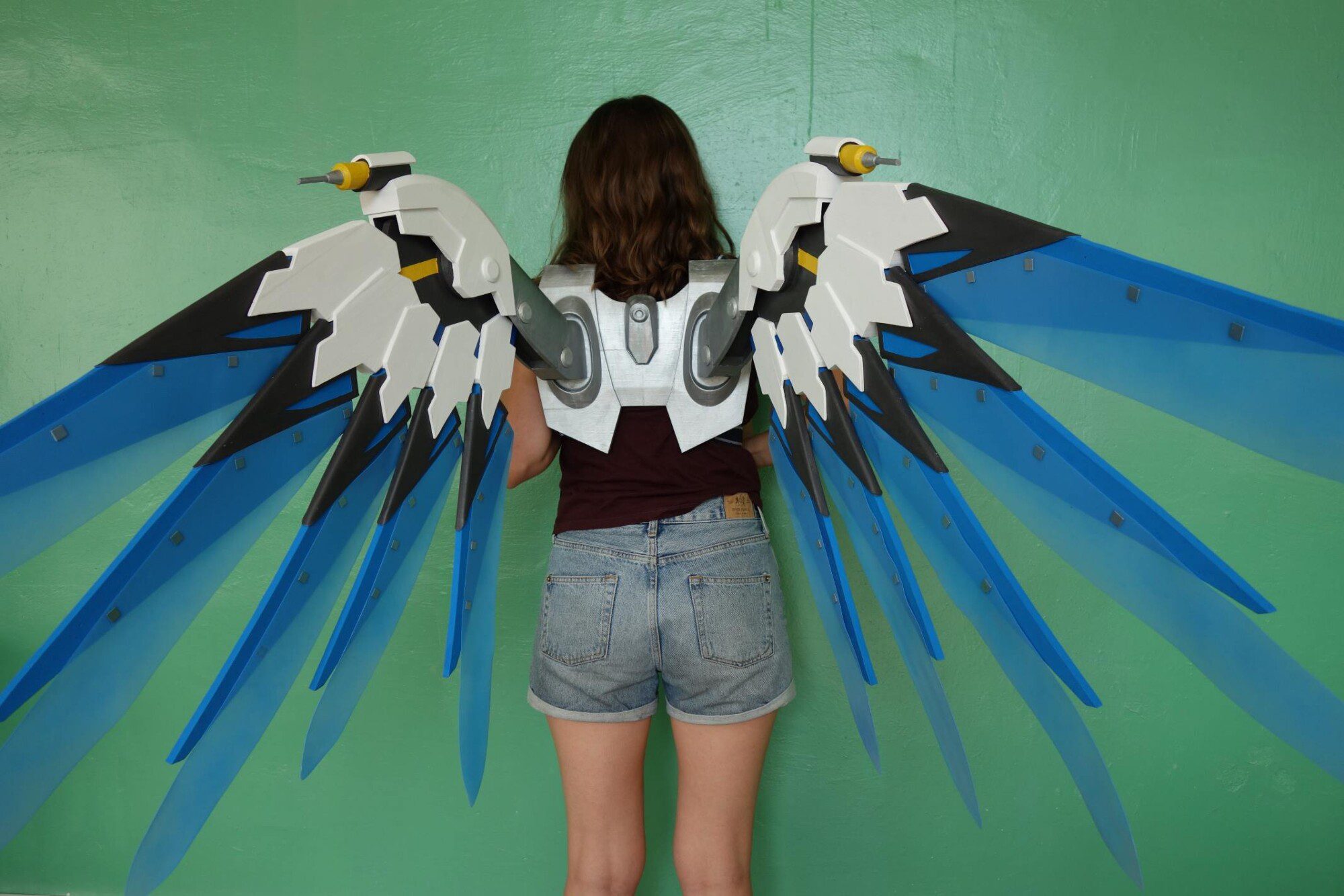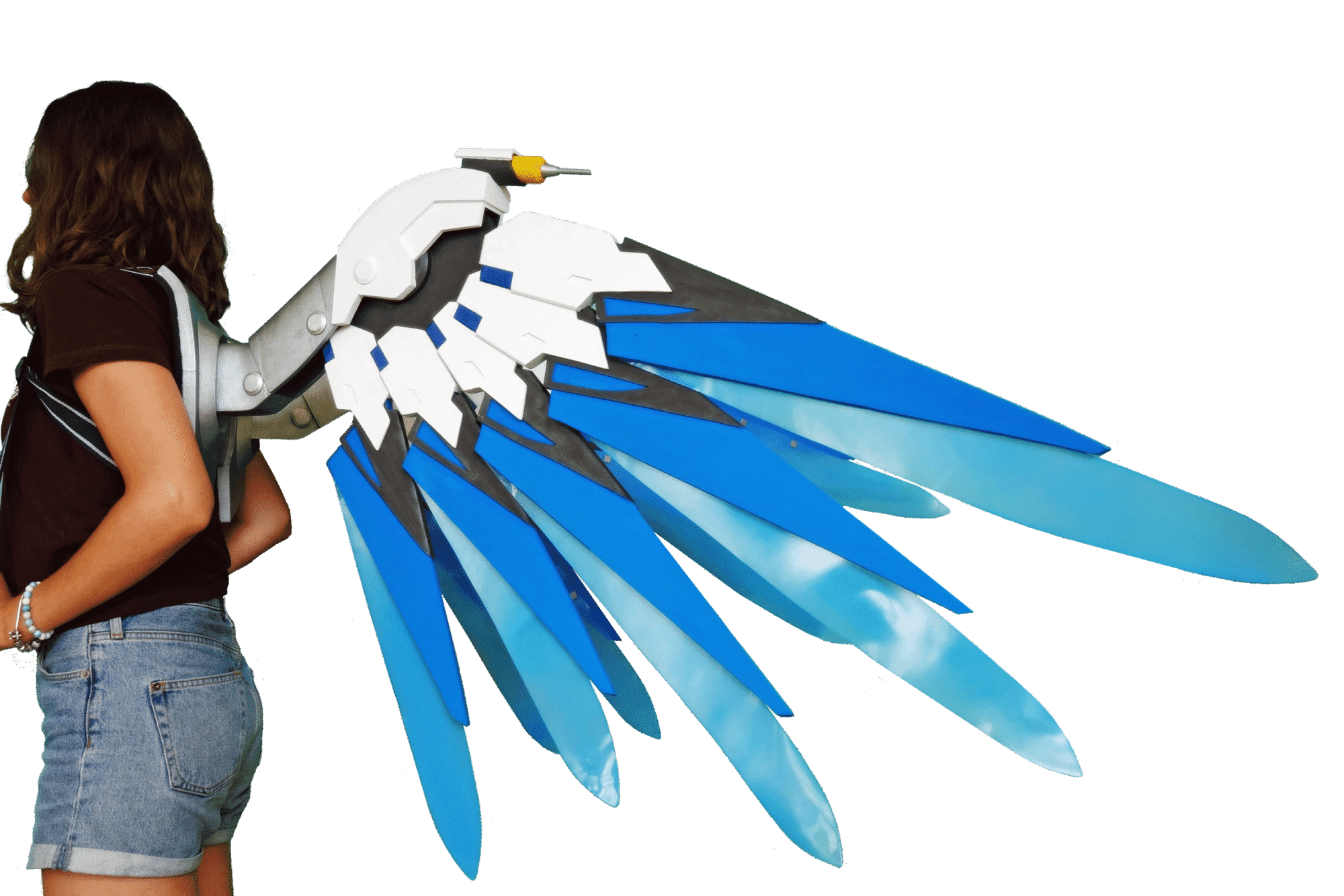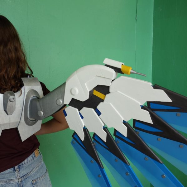 Wings are made plastic, assembled and sanded, hand painted with acrylic paint and varnished with a glossy /matte finish, so the paint could remain as long as possible. Good item to be used for Mercy Costume if you want to make impressive Mercy cosplay!