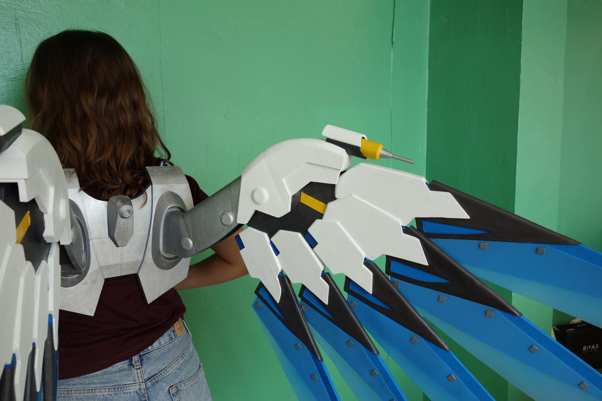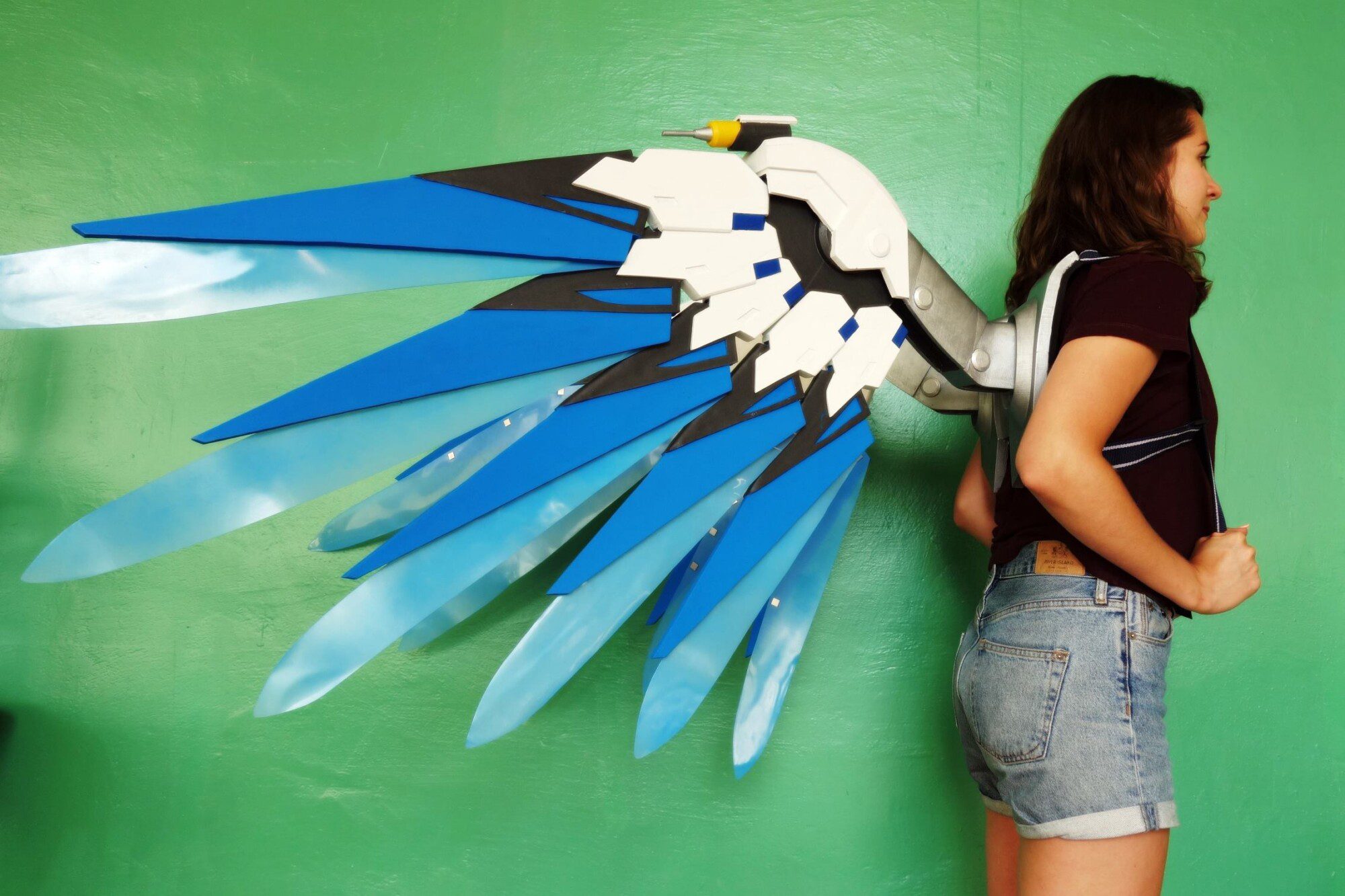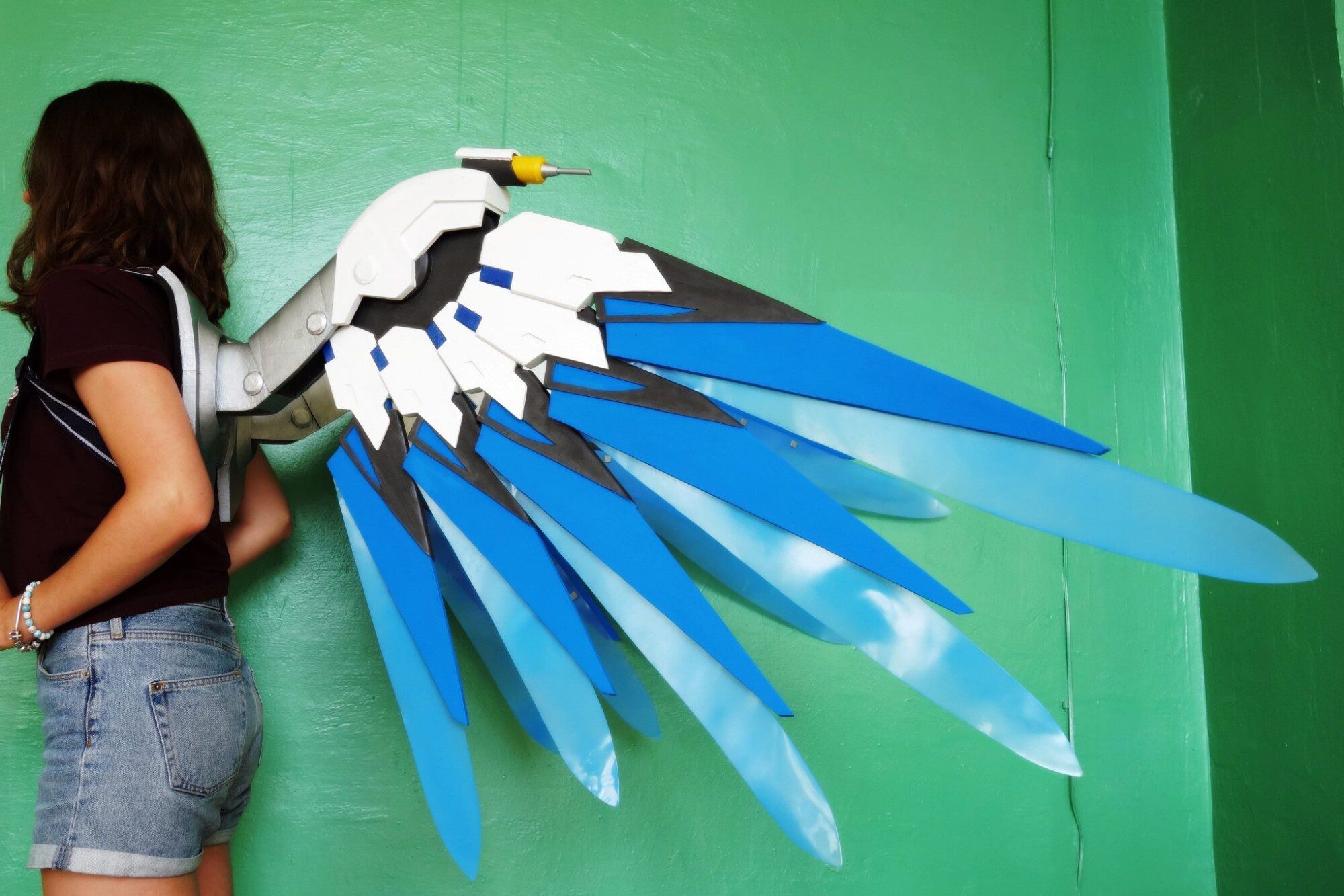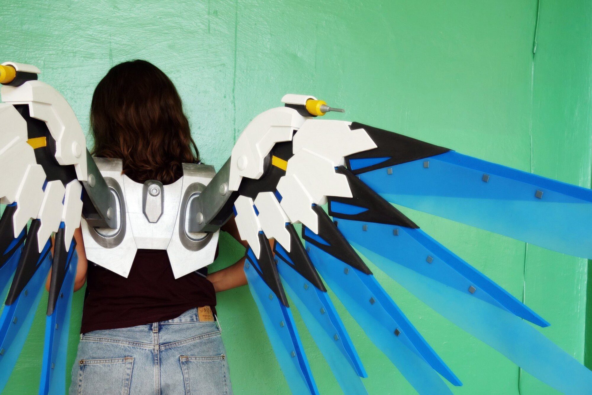 Wings are made plastic, assembled and sanded, hand painted with acrylic paint and varnished with a glossy /matte finish, so the paint could remain as long as possible. Good item to be used for Mercy Costume if you want to make impressive Mercy cosplay!
