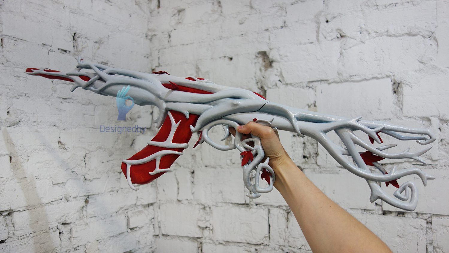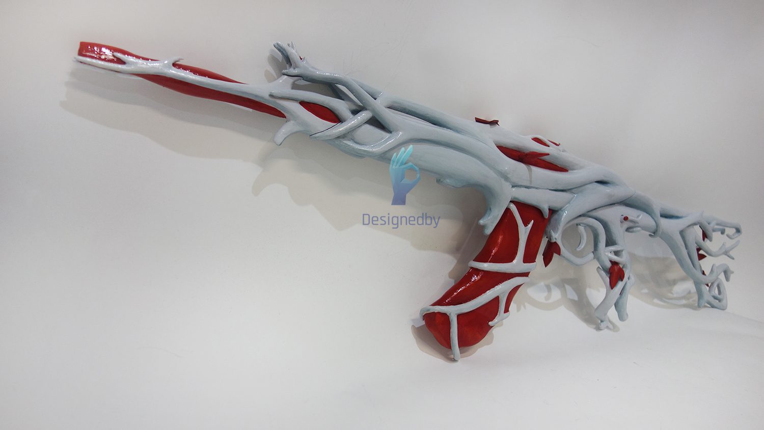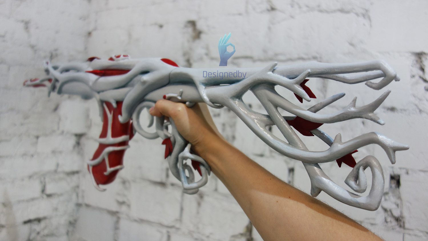 This is a Vandal rifle from Valorant in Gaia’s Vengence skin. The rifle prop is made of plastic, assembled and painted.