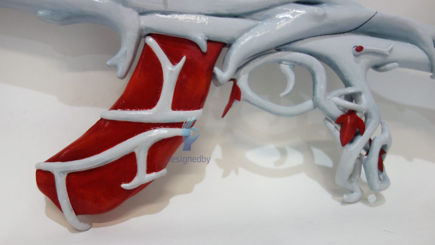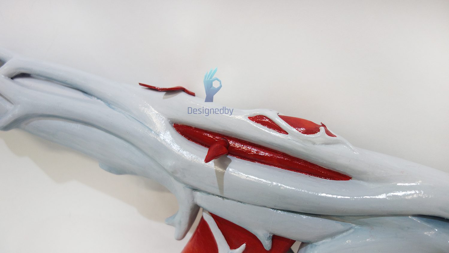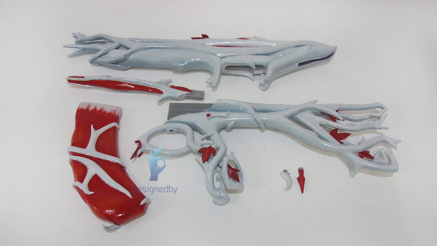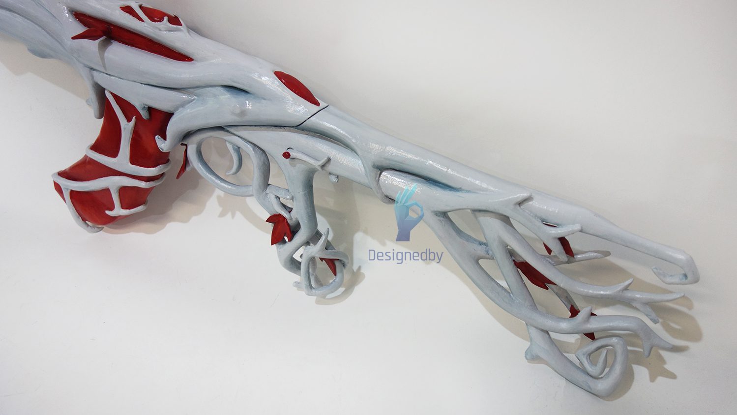 This is a Vandal rifle from Valorant in Gaia’s Vengence skin. The rifle prop is made of plastic, assembled and painted.