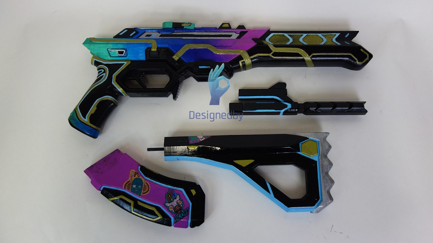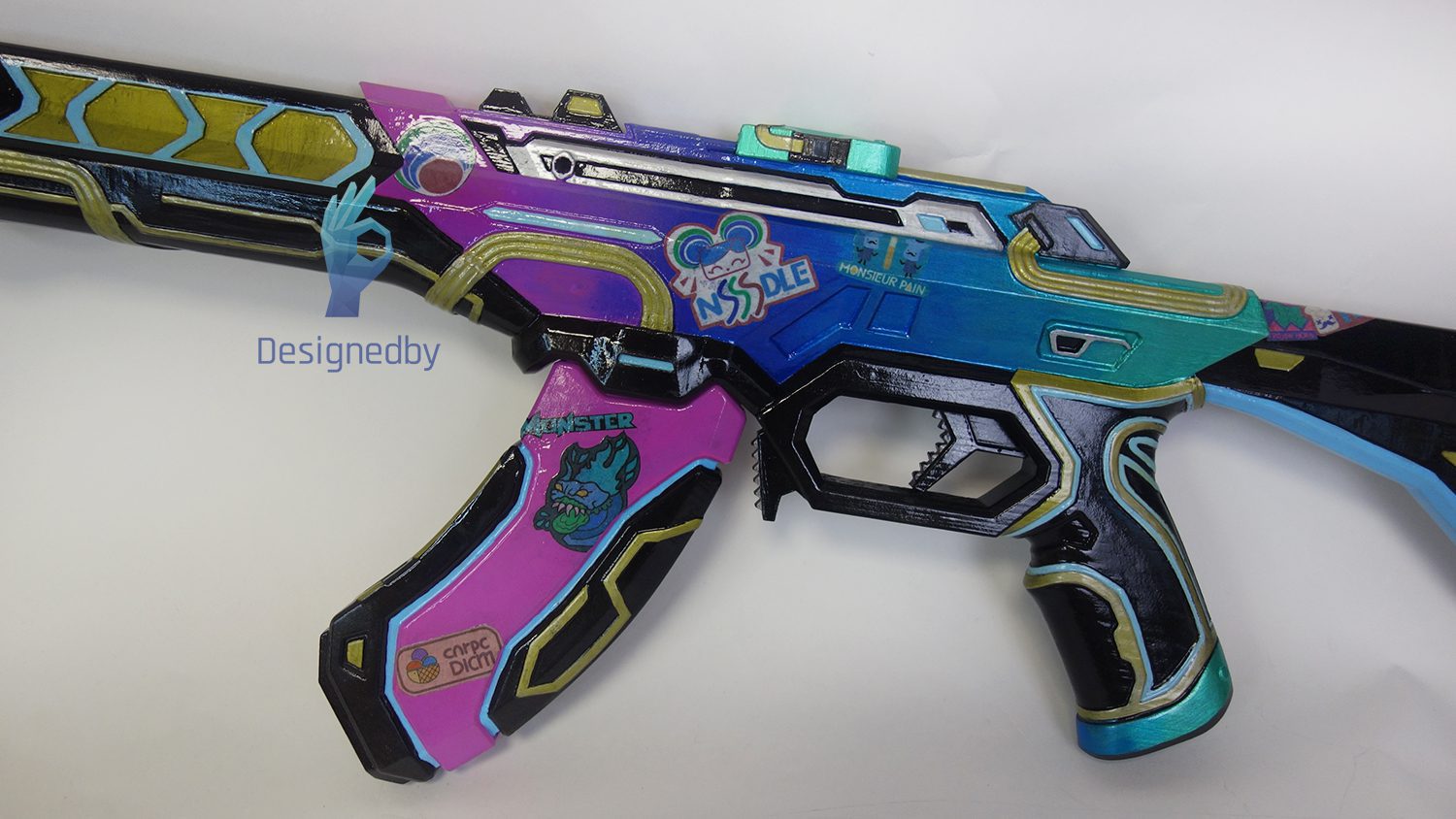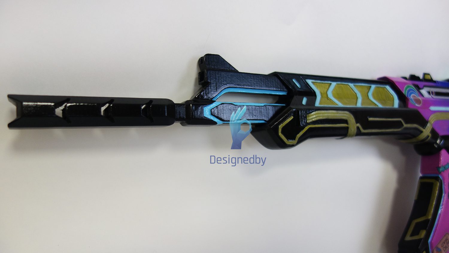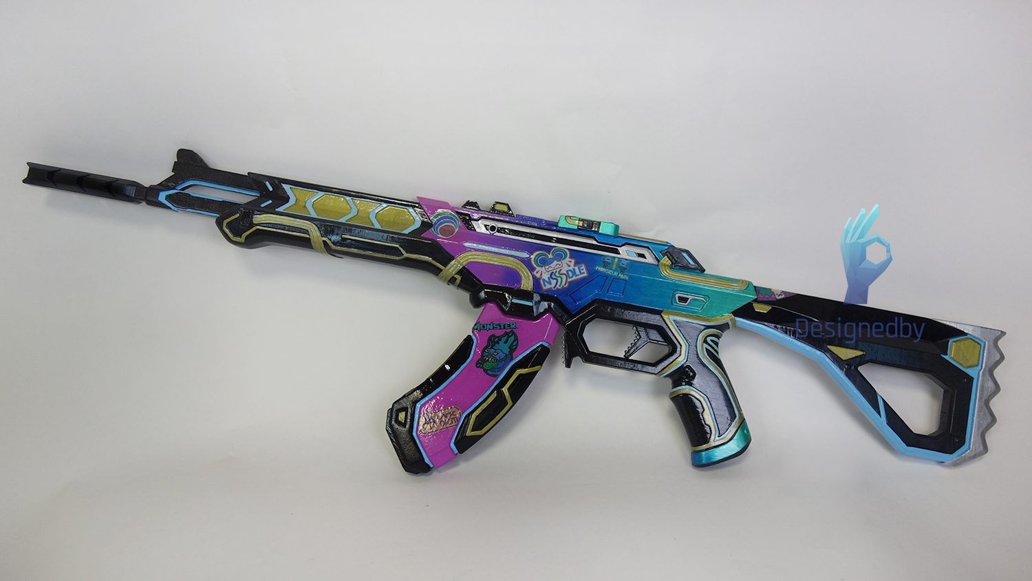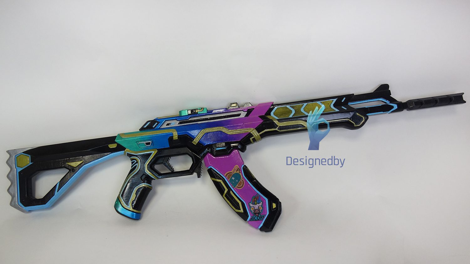 This is a Vandal rifle from Valorant. The rifle prop is made of plastic, assembled and painted.
